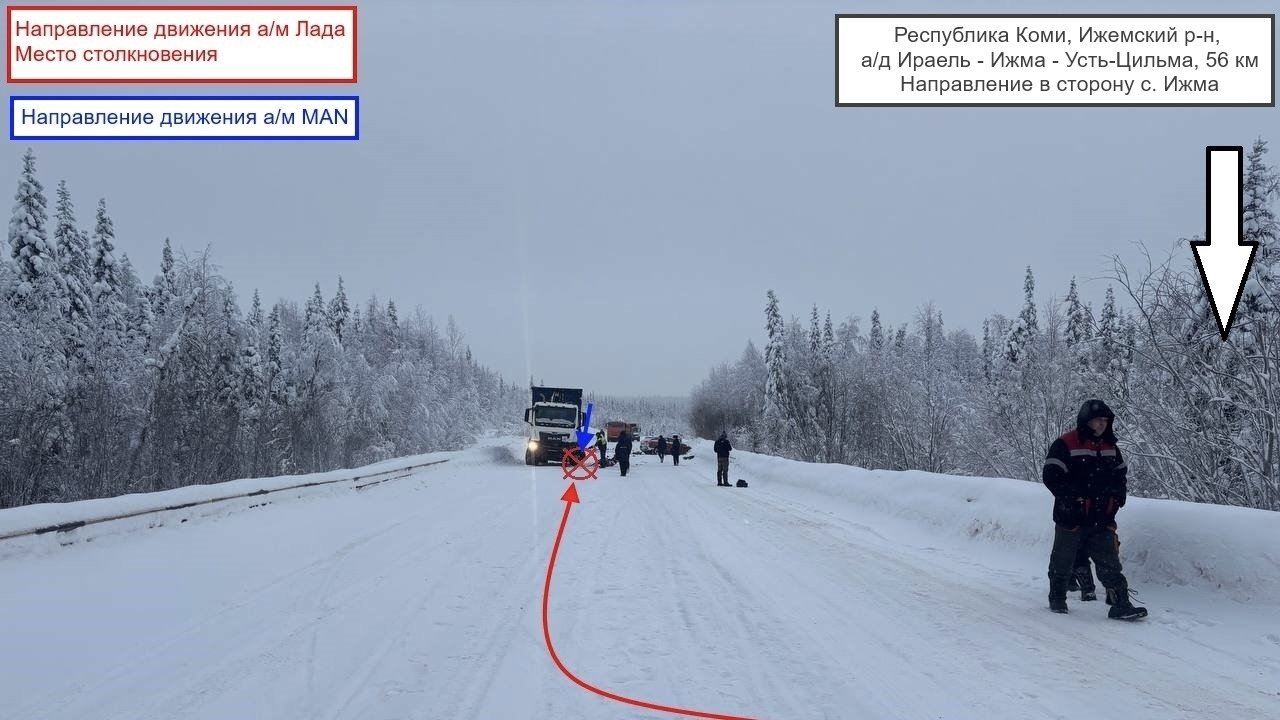 Смертельная авария случилась в Ижемском районе. В 10:40 16 января мужчина 1986 года рождения за рулём «Лада Веста» ехал по трассе Ираель - Ижма - Усть-Цильма в сторону Ираеля. На 56 км при маневре огона попутной машины водитель Lada выехал на встречную полосу и столкнулся с грузовиком MAN.